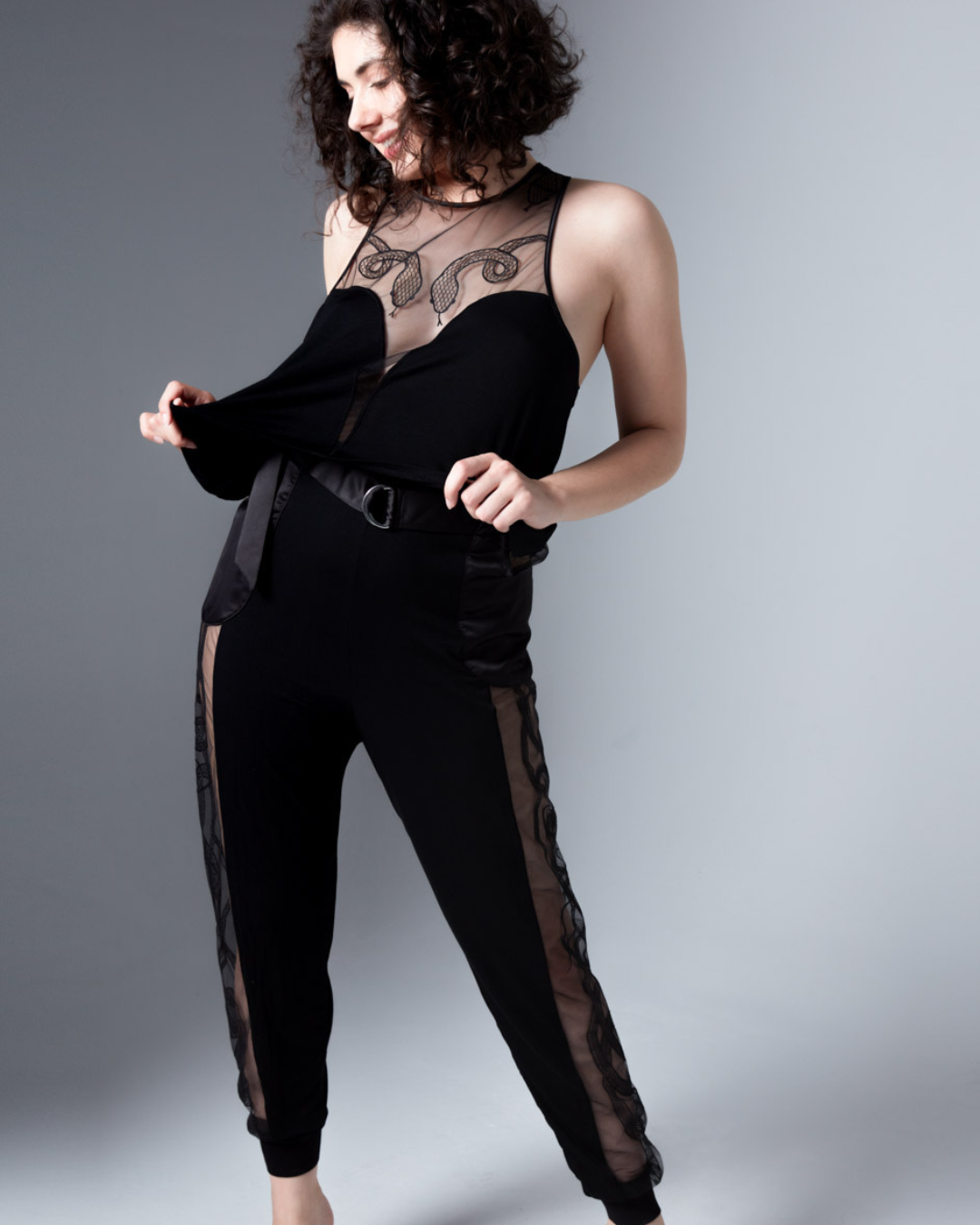 Made from modal jersey the Medusa pant has a soft buttery feel with maximum breathability. Featuring sheer cutout sides, belt and deep set pockets.
